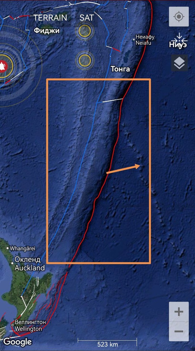 В ответ на пост От Тонги на юг в сторону Новой Зеландии тектоническое напряжение также сохраняется на уровне М6-7 ====== From Tonga southward towards New Zealand, tectonic stress also persists at the M6-7 level.