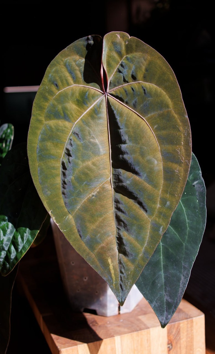 Пока монтирую видео, предлагаю полюбоваться AOS Tezula в лучах осеннего солнца 🔅🍁 Интересно, что молодой лист у него совсем не черный, как мне раньше казалось, он начинает фиолетовым, а затем становится зелено-красный с фиолетовыми жилами. Но при созревании становится темным-темным Уже такой большой 😍 #anthurium_AOS_Tezula