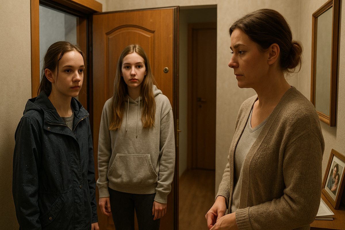 Марина на секунду задержала взгляд на дочери. За Лерой в дверях показалась девочка — тонкая, как ветка, с мокрыми волосами, собранными в кривой хвост. Глаза — серые, слишком внимательные для её возраста. Куртка — старенькая, на левом рукаве аккуратно заштопанная дырочка. Девочка стояла на пороге, будто в чужом доме был невидимый порог ещё и внутри неё самой.