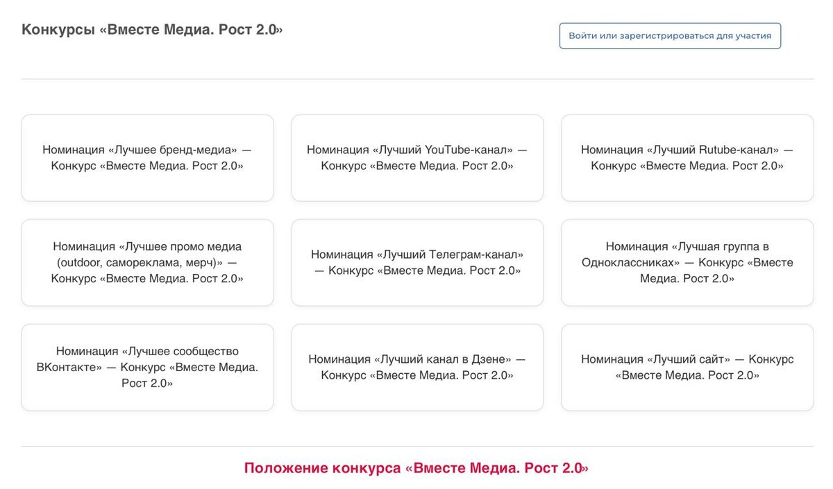 Друзья, делимся важными уточнениями! На сайте конкурса было обновлено положение по партнёрским номинациям ВКонтакте. Основные условия принятия работ практически не изменились: принимаются сообщества, группы и каналы медиа, являющиеся основными или дополнительными площадками с регулярными обновлениями.