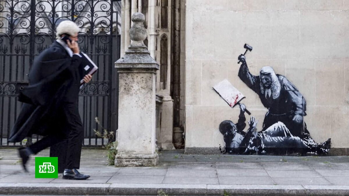 [ Смотреть видео на сайте НТВ ] В Лондоне начали расследование в отношении Бэнкси. Властям британской столицы не понравился новый рисунок известного уличного художника. Бэнкси нанес граффити на здание Королевского суда. Там изображен судья в мантии, который избивает протестующего молотком. Граффити художник сделал через два дня после того, как в Лондоне арестовали почти тысячу человек, которые вышли на протест из-за запрета пропалестинского митинга. Новая работа Бэнкси моментально попала под цензуру. Изображение закрыли щитами и собираются удалить. Полиция посчитала нанесение рисунка уголовным преступлением и планирует привлечь Бэнкси к суду. [ Смотреть видео на сайте НТВ ]