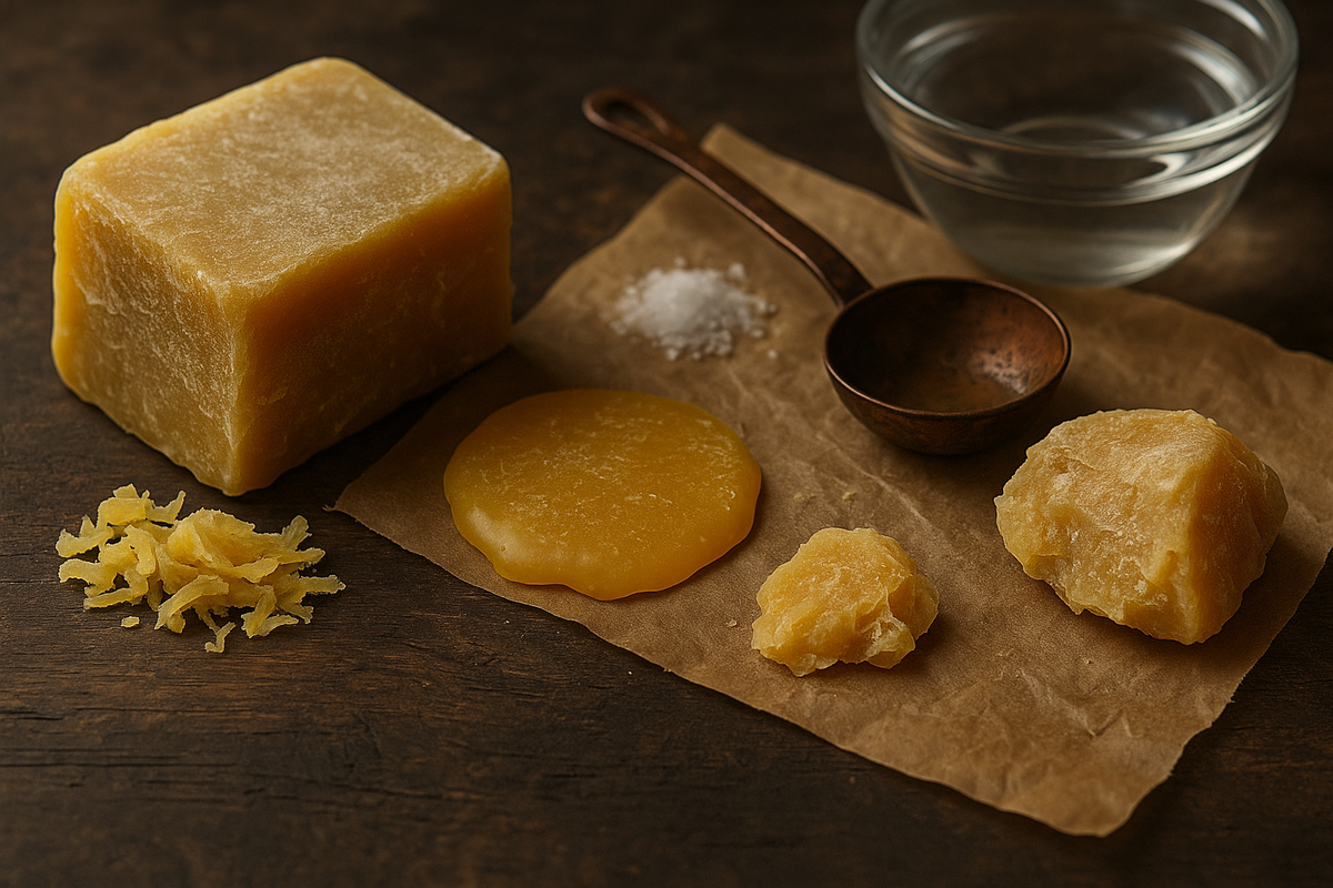 Тебе нужен натуральный пчелиный воск без примесей. Он пластичный, «тёплый» по ощущениям и хорошо «собирает» напряжение. Подойдут прессованные брусочки или гранулы, можно использовать церковные свечи, если они действительно восковые (без парафина и стеарина). Если сомневаешься, проверь: отломи крошку и подожги — у натурального воска мягкий медовый запах и почти нет копоти; химия даёт резкий запах и чёрный дым. Цвет (жёлтый, белёный) не критичен — смотри на состав.