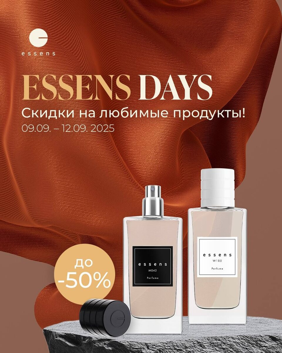 🔥 ГОРЯЧИЕ ДНИ В ESSENS! 🔥 С 9 по 12 сентября — всего 4 дня — действует акция со скидками до 50%! 🛍✨ Это отличная возможность пополнить свою коллекцию любимых продуктов ESSENS по суперценам! Не откладывайте: самые популярные товары разлетаются первыми. ⏳ 🎯 Помните: акция ограничена по времени и действует только с 9 по 12 сентября! https://www.essensworld.ru/essensdays