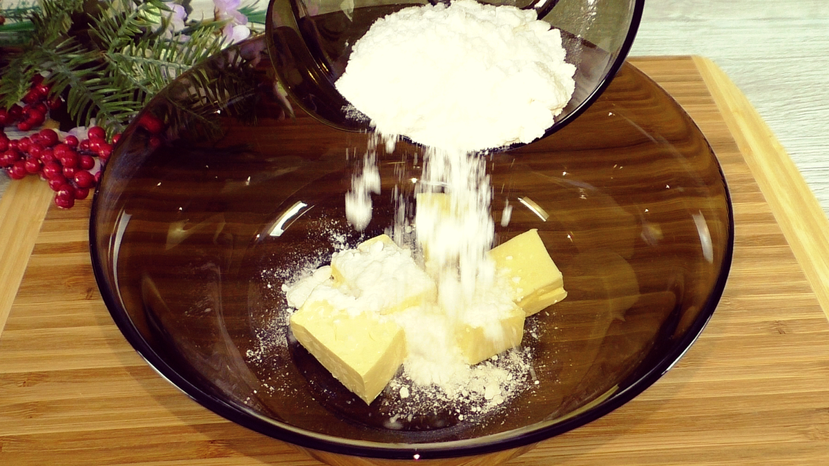 Осталось добавить муку и разрыхлитель. Муки уйдёт ориентировочно от 270 до 300 г, добавлять её лучше постепенно. Возможно, потребуется меньше муки. Если тесто крошится, значит, муки много, в таком случае добавляем по 1 ч. л. жидкости (вода, молоко, кефир) до необходимой консистенции.
