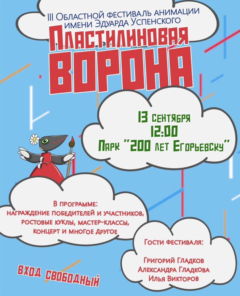 13 сентября в Егорьевске пройдет награждение победителей и участников фестиваля «Пластилиновая ворона