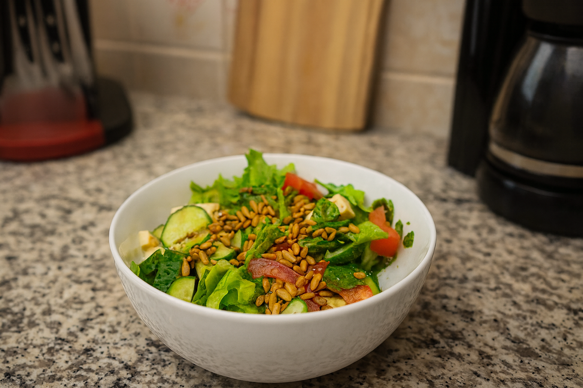Ко мне на приём пришла женщина и призналась: «Анна, я решила питаться правильно — ем только овощные салаты с семенами и маслом. Но после них у меня ощущение, будто я съела целую кастрюлю борща. Живот распирает, настроение падает. Как же так?» Знакомая ситуация? Многие искренне верят, что чем «чище» питание, тем лучше. Но на деле именно самый «здоровый» салат может вызвать тяжесть и вздутие. Давайте разберёмся, почему так происходит. Мы привыкли считать: салат из свежих овощей, заправленный маслом, с добавлением семян или орешков — идеальное блюдо для здоровья. Но в работе с женщинами старше 50 я регулярно вижу: после такой трапезы они жалуются на урчание в животе, чувство распирания и усталость. Получается, вместо пользы — дискомфорт. Почему так? Всё просто: пищеварительная система меняется с возрастом. Ферментов, которые помогают «разбирать» пищу на полезные составляющие, становится меньше. Желчный пузырь работает не так активно. А кишечник реагирует острее на грубую клетчатку. Капуст