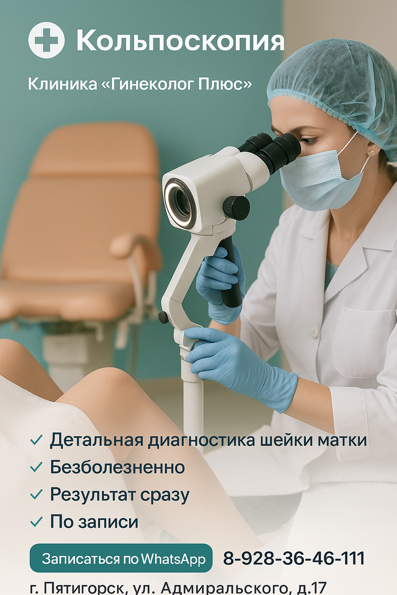 Кольпоскопия — золотой стандарт визуальной диагностики предраковых изменений и фоновых состояний. Процедура занимает 10–15 минут, без разрезов и без анестезии, результат — сразу. Обычно можно сразу к обычной активности. Если брали биопсию: 3–5 дней без секса, бани и тампонов, возможны лёгкие мажущие выделения. Записаться по WhatsApp: 8-928-36-46-111