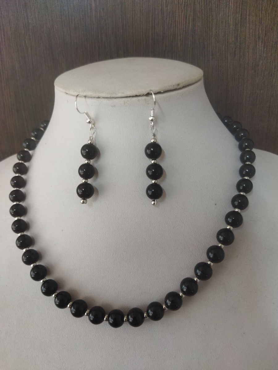 Девочки, наконец то мне пришли бусины из натурального камня, по началу я долго выбирала какие камни заказать, но все же выбрала, как по мне, так просто идеальные, вот и первый из них ожерелье и серьги из черного агата, разбавленные серебряными бусинами😍 Цена комплекта - 1100₽