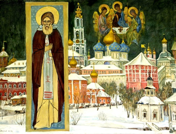 Метафизическое пространство в поэзии просторечии и красноречии названное «Святая Русь» – наднациональное православное царство спасения души от земных грехов для жизни вечной в Царствии Небесном – строилось благодаря трудам Сергия Радонежского, который ввел в основанных им обителях общежительный устав аскетической жизни монашеской коммуны. За свою жизнь (1314-1392) Сергий основал 10 монастырей.