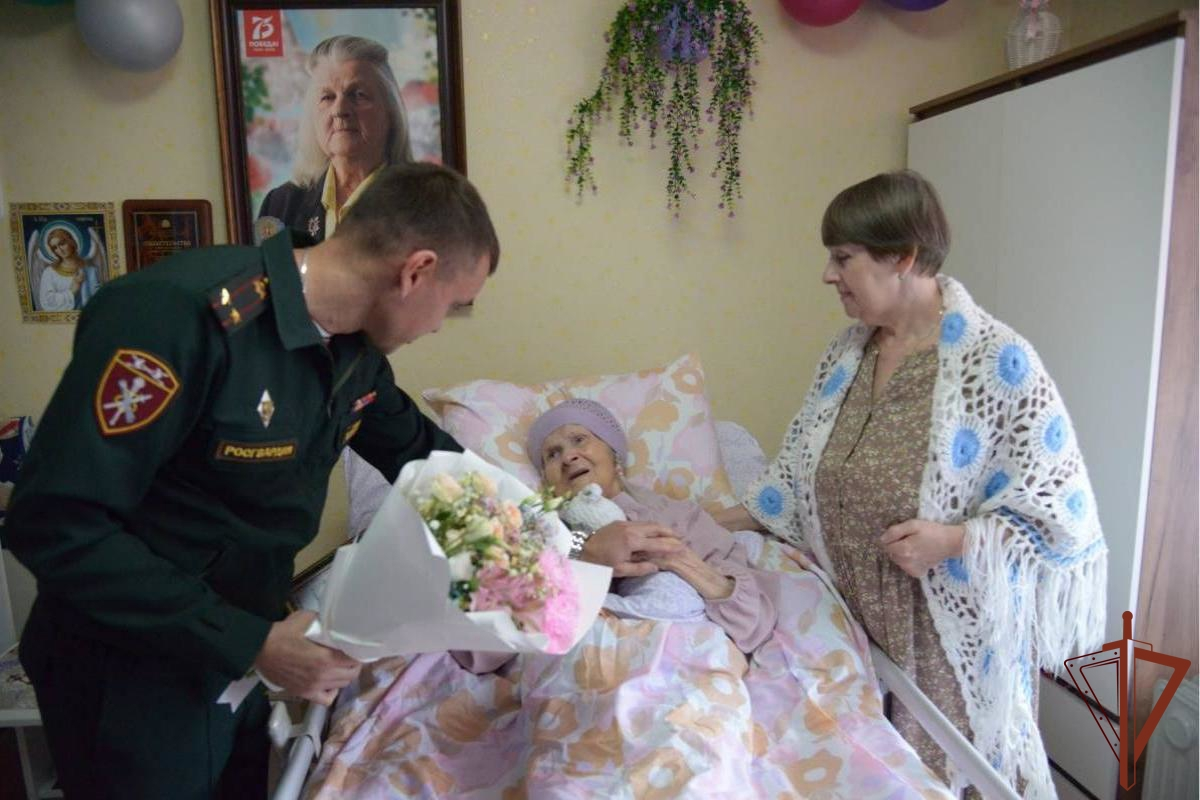 Военнослужащие и сотрудники Управления Росгвардии по ХМАО – Югре поздравили единственную проживающую в Ханты-Мансийске участницу Великой Отечественной войны Софью Сергеевну Кузнецову.