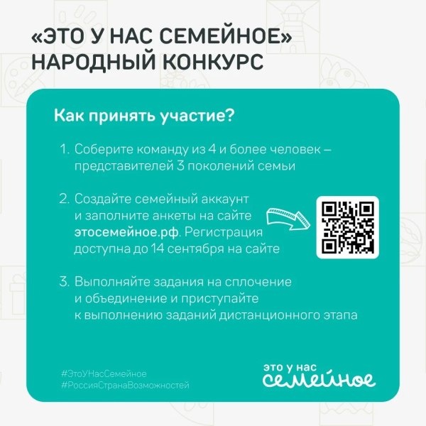 «Это у нас семейное»! На конкурс зарегистрировались 159 471 участник это 47 140 семейных команд из 89 регионов России и 39 стран. Республика Башкортостан входит в 10-ку самых активных регионов по количеству заявок, ее представляют 1 475 семейных команд 4 716 участников. Регистрация доступна до 14 сентября на сайте этосемейное.рф Дистанционный этап второго сезона конкурса «Это у нас семейное» продлится до 1 октября. Завершится он викториной на знание истории и культуры России. В полуфинал проекта выйдут семьи, которые наберут больше всего баллов за дистанционный этап. В прошлом году в первом сезоне конкурса «Это у нас семейное» финалистами стали семь семейных команд из Башкортостана три семьи из Уфы, семьи из Стерлитамака, Бирска, Октябрьского и Учалов. Победила семья Гайнутдиновых-Файзуллиных из Уфы дедушка Рафис, папа Флорид, мама Лилия, сыновья Динияр, Вильдан и дочка Дилара. Пожелаем участникам из Башкортостана удачи и… https://uchaly102.ru/?p=97848