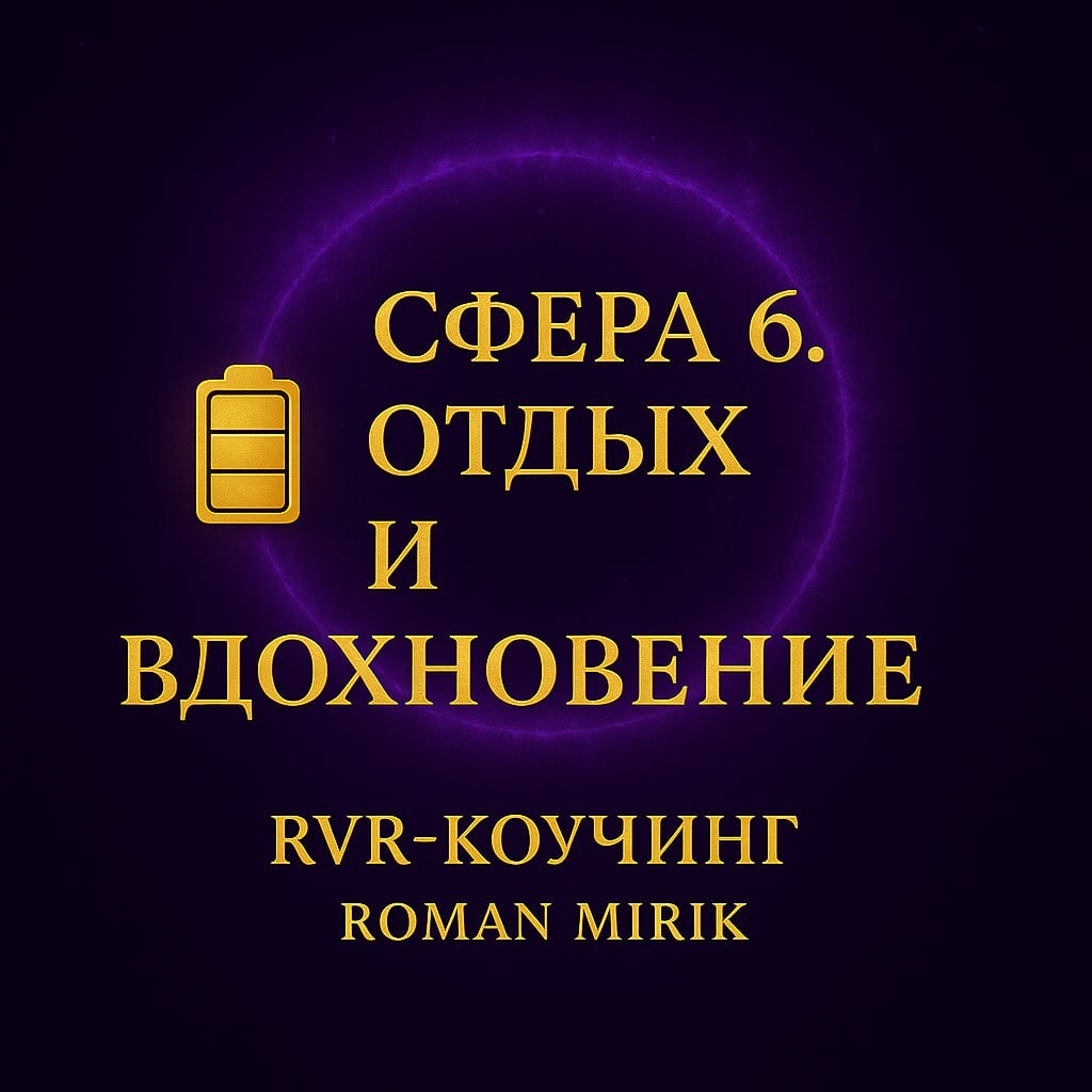 🔋 Сфера 6. Отдых и вдохновение ✨ Отдых — это инвестиция в энергию. ❓ Есть ли у тебя время для восстановления? ✅ Практика: • Определи минимум 30 минут в день для отдыха. • Выключи все гаджеты. • Заметь, как изменилось состояние. ✨ Без паузы нет прогресса. ❓ Когда в последний раз ты позволял себе остановиться? ✅ Практика: • Выбери 1 день на неделе без перегрузки. • Устрой «день без планов». • Запиши, что почувствовал. ✨ Вдохновение приходит в тишине. ❓ Как часто ты остаёшься один на один с собой? ✅ Практика: • Найди тихое место. • Сядь на 10 минут в тишине. • Запиши любые мысли и идеи. ✨ Переключение — ключ к продуктивности. ❓ Как ты переключаешься с работы на отдых? ✅ Практика: • Создай ритуал завершения работы (музыка, прогулка). • Сделай его сегодня. • Заметь, насколько легче стало отдыхать. ✨ Новые впечатления возвращают вкус к жизни. ❓ Когда ты в последний раз пробовал что-то новое? ✅ Практика: • Составь список из 5 новых активностей. • Выбери одну. • Попробуй в ближайшие дни.
