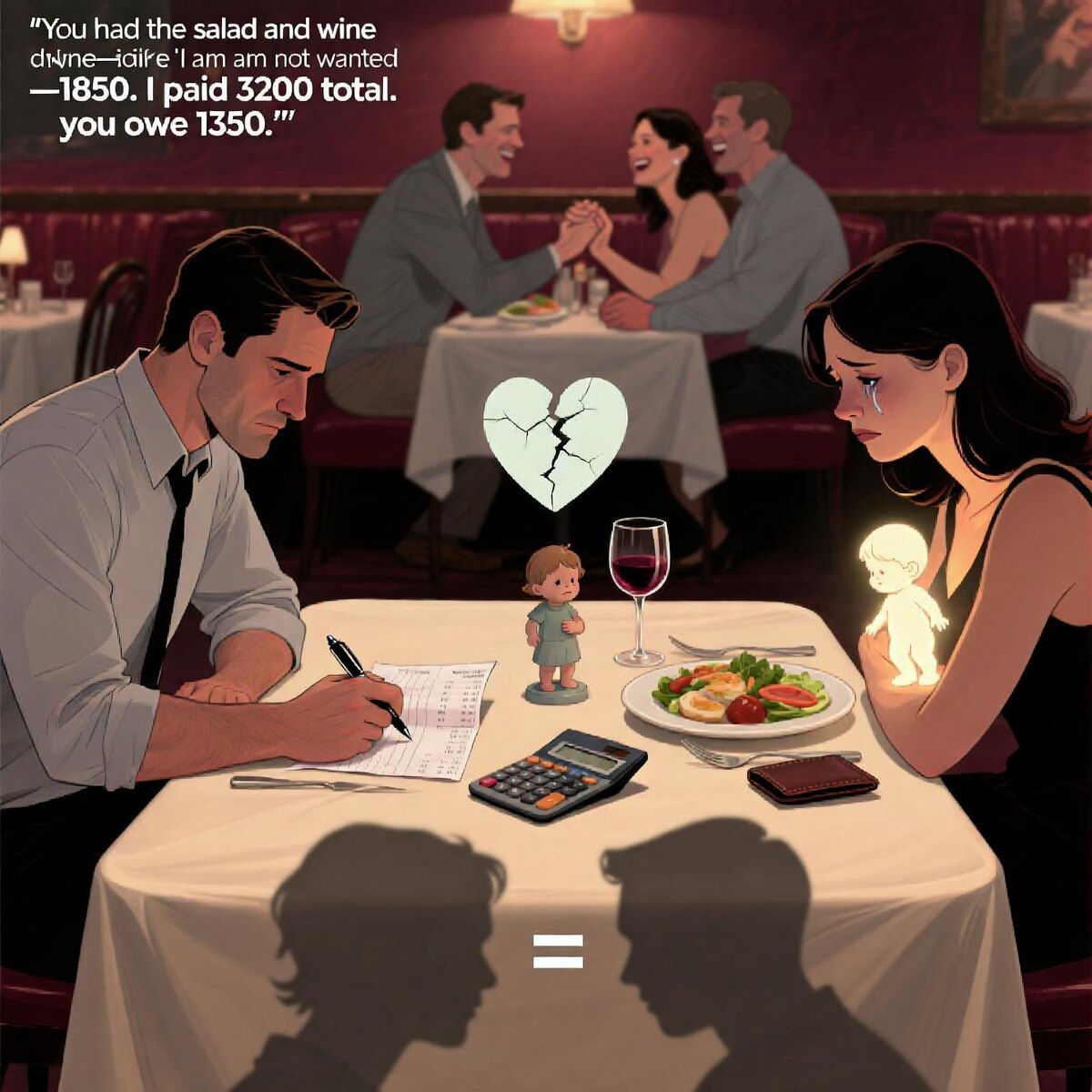 Он говорит: «Я заплачу за себя. Ты — за себя. Так честно ведь, верно?».