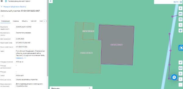 Название: Площадь: 455 +/- 7 м2; Местоположение земельного участка: Российская Федерация, Мурманская область, муниципальный район Терский