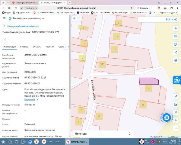 Название: Земельный участок с кадастровым номером 61:35:0020101:2221 площадь 579 по адресу Российская Федерация, Ростовская область