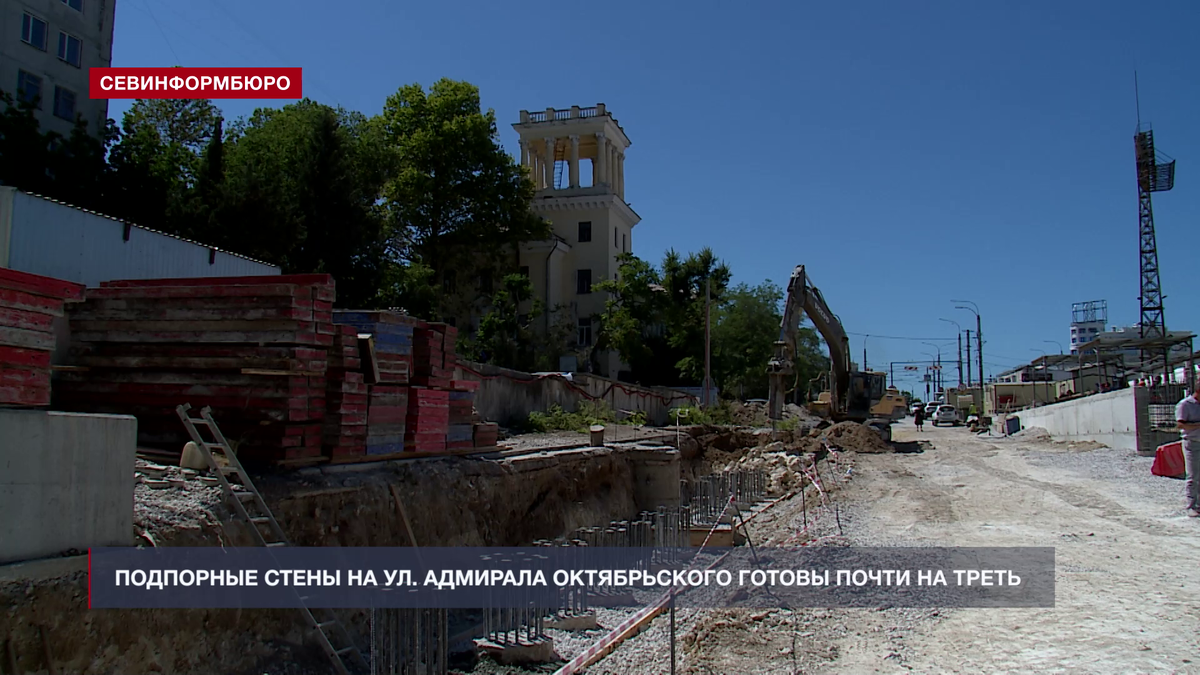 Подпорные стены на улице Адмирала Октябрьского готовы почти на треть. Сейчас подрядная организация завершает установку буронабивных свай, а после перейдёт к бетонированию объекта и снижению временной насыпи. Капитальный ремонт планируют завершить к концу этого года. В феврале этого года подрядная организация «ВАД» приступила к ремонту одного из самых сложных севастопольских объектов – подпорных стен на улице Адмирала Октябрьского. Специалисты отмечают, что работать приходится в ограниченном пространстве. К тому же, по обе стороны находятся жилые здания и городская больница. Несмотря на это ремонт идёт в графике – строители завершают установку буронабивных свай, которые станут стержнем будущих стен. «Уже в мае приступили к обустройству этих свай. На сегодняшний день из 213 свай порядка 170 свай уже обустроены – это порядка 80%. Уже даже обустроены ростверки верхнего яруса, также на 100% все анкерные сваи обустроены», - рассказал директор Департамента транспорта и развития дорожно-трансп