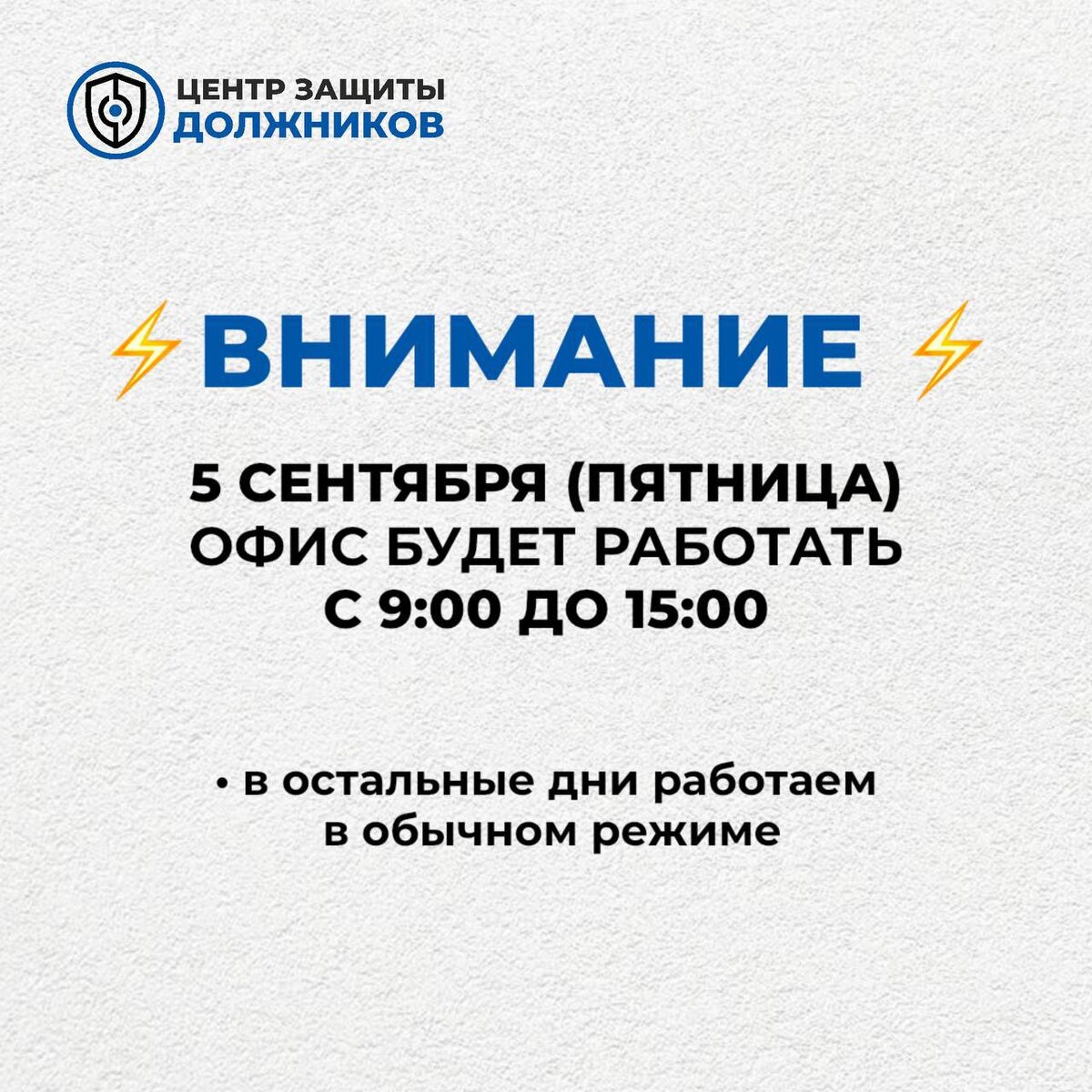 5 сентября офис будет открыт с 09:00 до 15:00.