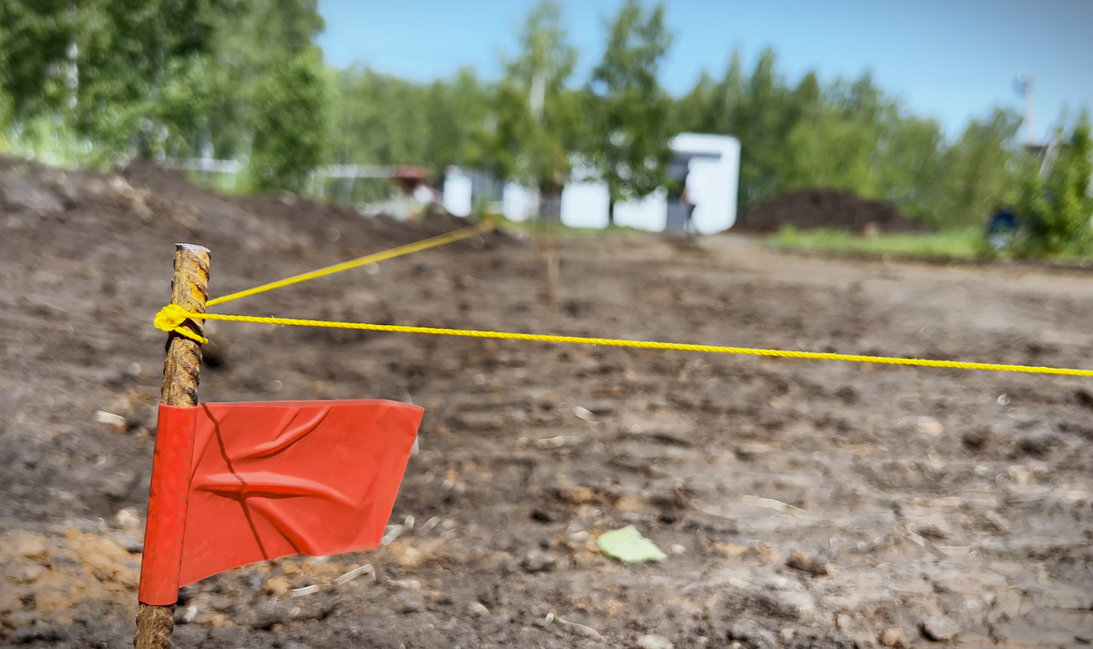 Первый практический шаг – подготовка территории. Мы снимаем весь плодородный слой грунта по контуру будущего дома и ещё примерно 1–1,5 м за его пределами. Это делается для отсыпки песчано-гравийной подушки: когда дом уже построен, к ним может быть сложно подъехать техникой, а сейчас – наоборот, копать дешевле и быстрее. На этом этапе важно точно соблюсти размеры и диагонали будущего здания. По проектной разметке мы отмечаем все углы дома и точки для бурения свай.