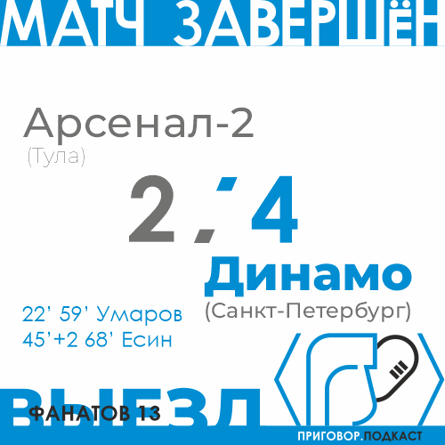 Есть у нас моменты, чтобы еще увеличить преимущество. После возобновления матча Масалов исполняет штрафной с правого фланга и закручивает под перекладину, но вратарь Арсенала спасает свою команду. В ответ футболисты хозяев начинают терять самообладание и жестить в необязательных ситуациях. Такие паузы для наших игроков болезненны, но для команды полезны, так как разбивают остаток матча на отрезки и дают повод успокоить темп игры. Пару раз достается Демину, потом Першину.