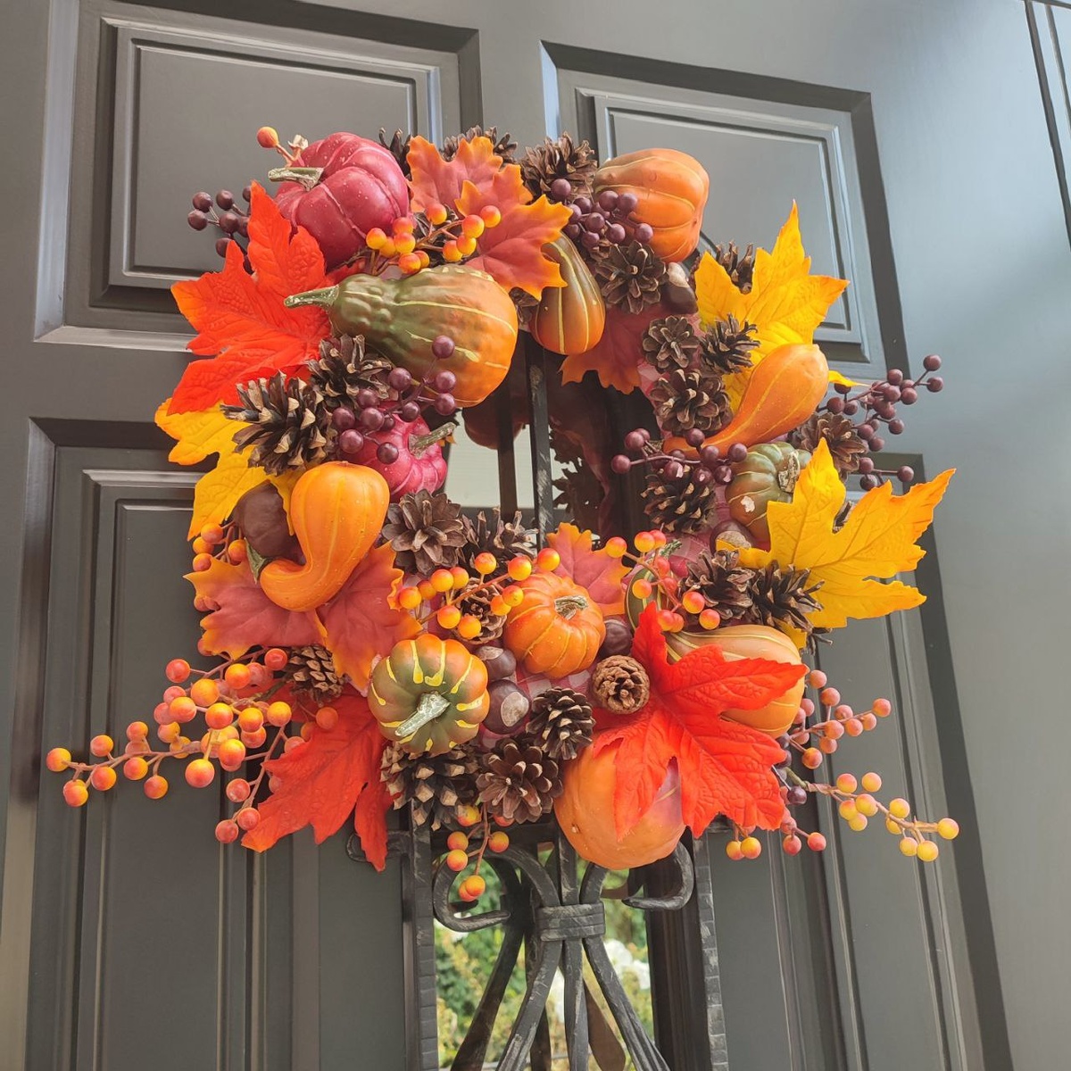 Уфф! Чуть не забыла! Ну никак нельзя начинать осень без этого украшения 😍🍁 Уже два года назад сделала этот венок, каждый раз любуюсь! Птички его слегка попробовали на вкус местами, но поняли, что несъедобно, потому он в неплохой сохранности 😃 Может мастер-класс по декоративным венкам сделать?:) Хотя я не знаю никаких правил и законов композиции, делаю, как нравится 😉