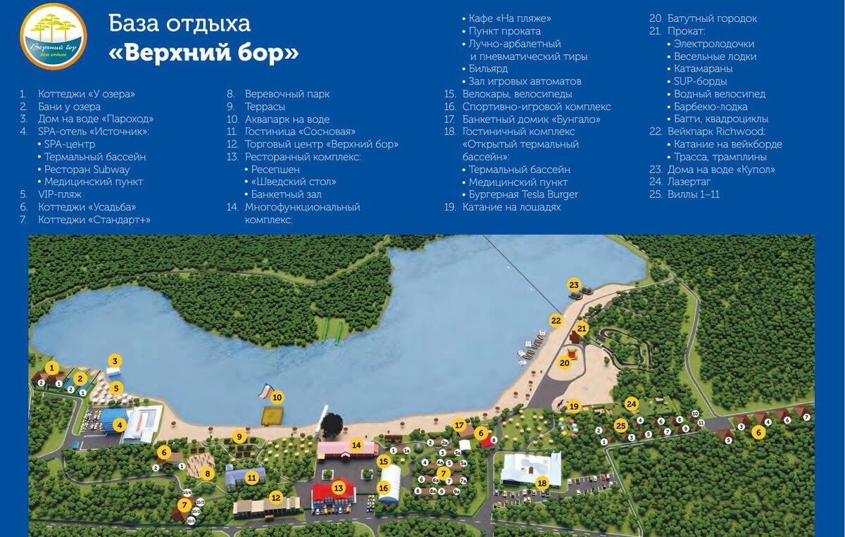 На территории в 12га соснового леса на берегу озера расположились 3 гостиницы, коттеджи, современные усадьбы, дома на воде и роскошные виллы с джакузи на улице! Рассчитать цены на ваши даты, посмотрит фото и видео обзоры номерного фонда spa-tmn.ru Бонусные услуги проживающим: https://vbor.ru/baza-otdykha/sobytiya/bonusnye-uslugi-pri-razmeshchenii-v-gostinichnykh-nomerakh-i-kottedzhakh-v-letniy-period/ Верхний бор - это полноценный курорт с множеством услуг для удобства гостей! 2 бассейна с горячей минеральной водой, зоопарки, детская и взрослая анимация, прокат по сезону, кафе и собственный торговый цент! Забронировать онлайн spa-tmn.ru +7 (3452) 383-553 доб.1 +7 (919) 940-92-48 bron@spa-tmn.ru Время работы отдела бронирования - с 8.00 до 20:00 Где вам нравится останавливаться у нас ? Делитесь в комментариях 👇