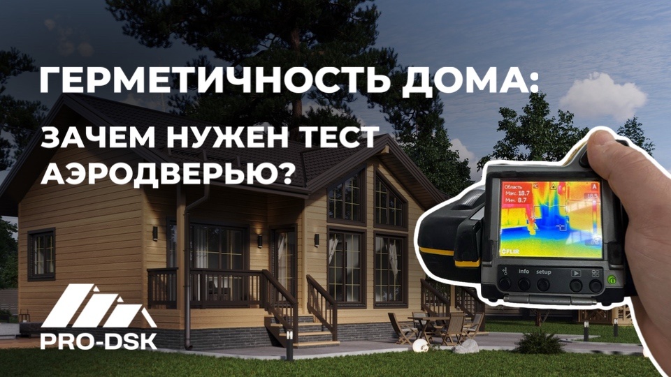Строительная компания PRO DSK уделяет особое внимание качеству и энергоэффективности частных домов. Именно поэтому мы проверяем воздухопроницаемость ограждающих конструкций с помощью Аэродвери в соответствии с международным стандартом ISO 9972.