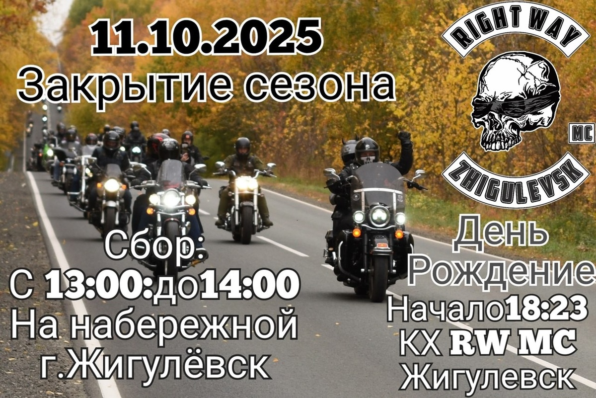🔁 Дальняк.рф™: ‼️‼️‼️ 11.10.2025‼️‼️‼️ ‼️Официальное закрытие мотосезона г.Жигулевск‼️ Сбор на набережной г.Жигулевск с 13:00 до 14:00 Общее фото Осенний прохват И неофициальная часть на нашем КХ RIGHT WAY MC_ ZHIGULEVSK