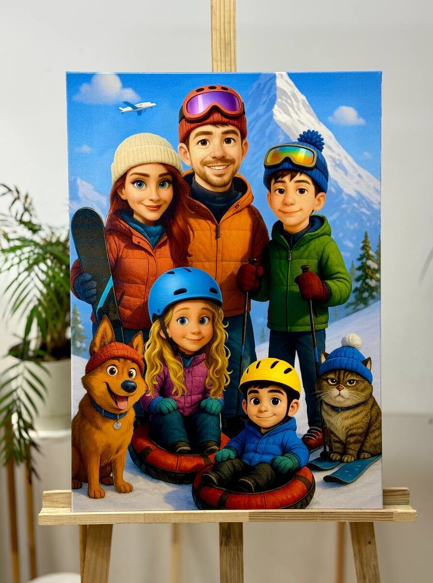 🏔 Зимние воспоминания, которые останутся навсегда Представьте: одно ваше фото превращается в яркую анимационную историю, где вы и ваши близкие — главные герои. Даже кот и пёс получили свою «мультяшную» версию! 🎨 Почему выбирают нас: • Премиум-качество печати на прочном холсте — портрет десятилетиями сохраняет яркость. • Художники прорабатывают каждую деталь: от блеска в глазах до фактуры одежды. • Лёгкая и приятная коммуникация — от идеи до готового портрета без лишних хлопот. • Можно из любого фото создать шедевр в любимом стиле: мультфильм, цифровая живопись, минимализм. 📌 Такой портрет — не просто картина, а семейная реликвия, которая радует каждый день. ✨ Хотите, чтобы ваше фото засияло так же? Пишите прямо сейчас — @ZakazMnogoholstov Чем раньше начнём, тем быстрее портрет будет у вас дома! ⸻ 💡 Интересный факт: Мультяшный стиль позволяет художнику подчеркнуть эмоции и атмосферу момента, делая портрет более тёплым и «живым», чем любое фото.