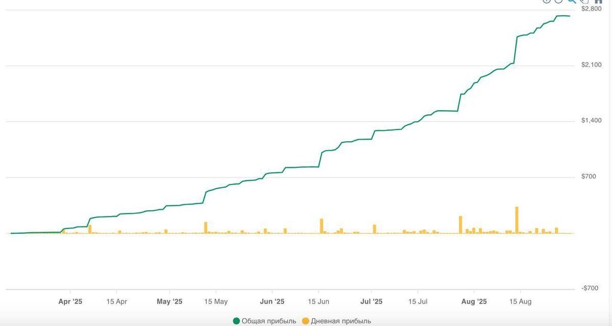 Август: +10,3% прибыли на ботах Если честно, я сам удивляюсь, насколько равномерно работают эти алгоритмы. Август вообще считается «не самым рыбным» месяцем — рынки в полусне, новостей минимум. А результат всё равно есть: мой депозит вырос с $9,600 до $12,450. У клиентов картина ещё ярче — некоторые показали до +13%. И вот что мне особенно нравится: это не «один выстрел», а постоянный поток прибыли, который копится за счёт сложного процента и реинвеста. Ранее я писал, что боты превращают волатильность в инструмент — и график выше это подтверждает. Прибыль капает почти каждый день, без гонки за хайпом, без угадывания направлений. Что это значит? Для меня — спокойное и стабильное наращивание капитала, без нервной мясорубки. Я не жду «чуда на рынке», я просто строю систему, которая работает месяц за месяцем. Хотите также разобраться, как это устроено и можно ли повторить? Переходите по ссылке и узнайте подробнее 👇 Узнать подробнее о ботах #боты #инвестиции #крипторынок #прибыль
