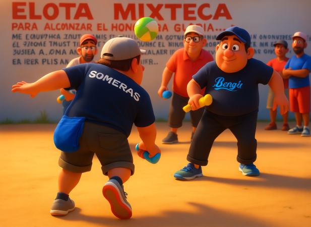 Представьте: вы стоите на каменном столбе, в руках — тяжелый резиновый мяч, на запястье закреплен кожаный ремень. Перед вами — стена, за которой вас ждут не аплодисменты, судьба, решённая богами . Это не сценарий фильма, а реальность, которую Pelota Mixteca — древнейшие игры народов Мезоамерики, миштеки (жители современной Мексики) играли ещё 3000 лет назад . Для миштеков Pelota Mixteca была связана с внешним миром . Игра проводилась в честь бога Камацотца («Летучая мышь смерти») и часто завершалась жертвоприношением — не проигравшего, а победителя ! Считалось, что его кровь умилостивит богов, обеспечив урожай и защиту от врагов. Мяч, сделанный из вулканической смолы, символизировал солнце , поле — путь между мирами . Каждый удар ремнём по запястью был молитвой. В каждой команде пять игроков: один из них отбивает мяч о землю, а затем перекидывает его на другую сторону площадки. Команда соперника должна отбить мяч обратно в пределах площадки. Большинство игр проводятся в турнирном фор