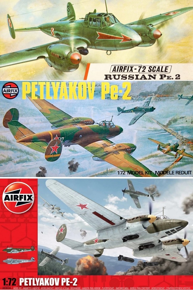 Модель с перерывами издавалась до 2010 года и если первое издание предлагало страждущим неведомый «Russian Pe.2» (верхний боксарт), то потом, по крайней мере с названиями исправились.