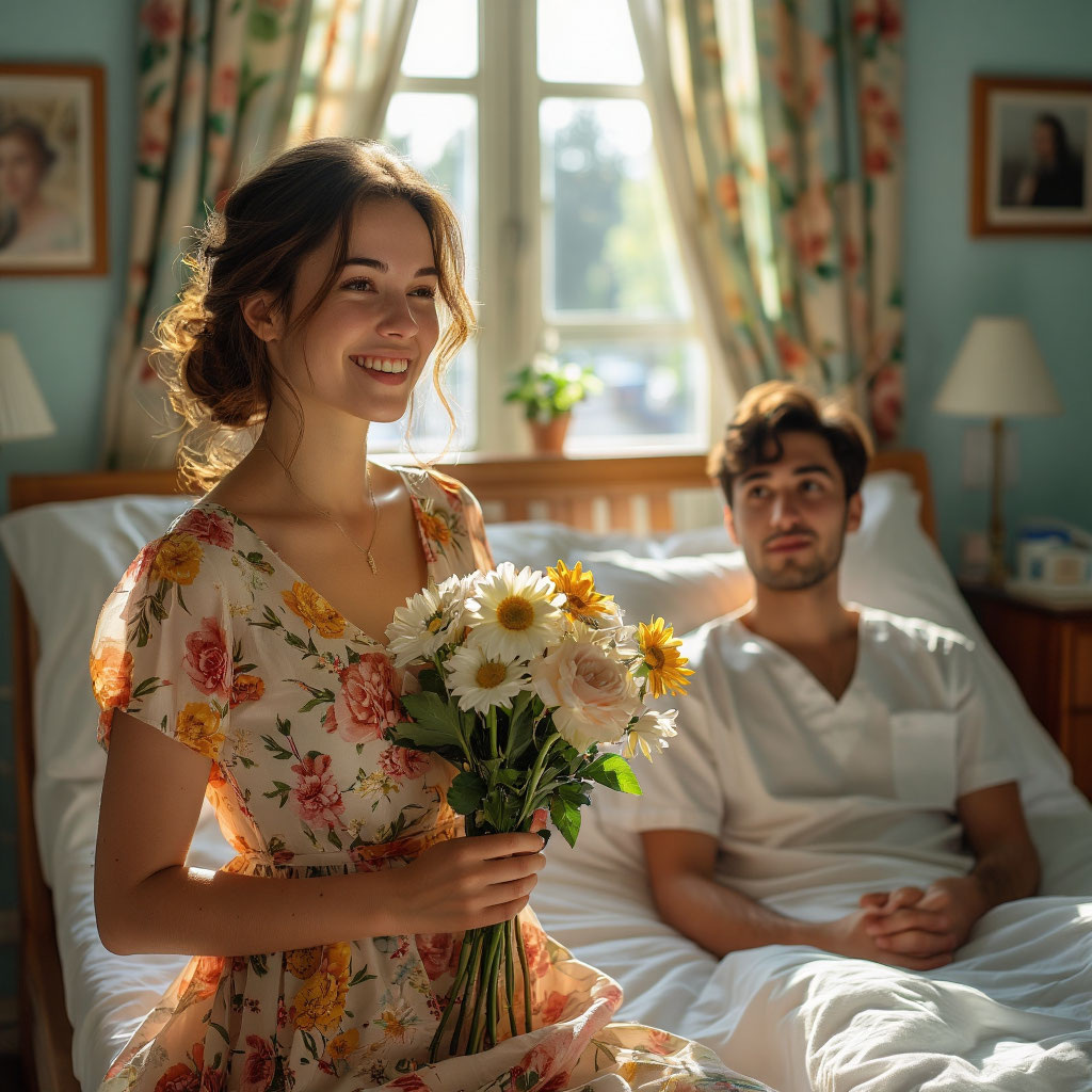 Елена проникла в палату к Юрию в тот самый день, когда ему разрешили вставать. Нарядилась в принесенные сестрой легкое платьишко в цветочек и туфли на низком ходу («чтобы не стучать, как копытом по паркету»), собрала волосы в аккуратный пучок, взяла с собой букетик и принесенный той же родственницей пакетик с домашним вареньем - «на случай, если он захочет чаю».