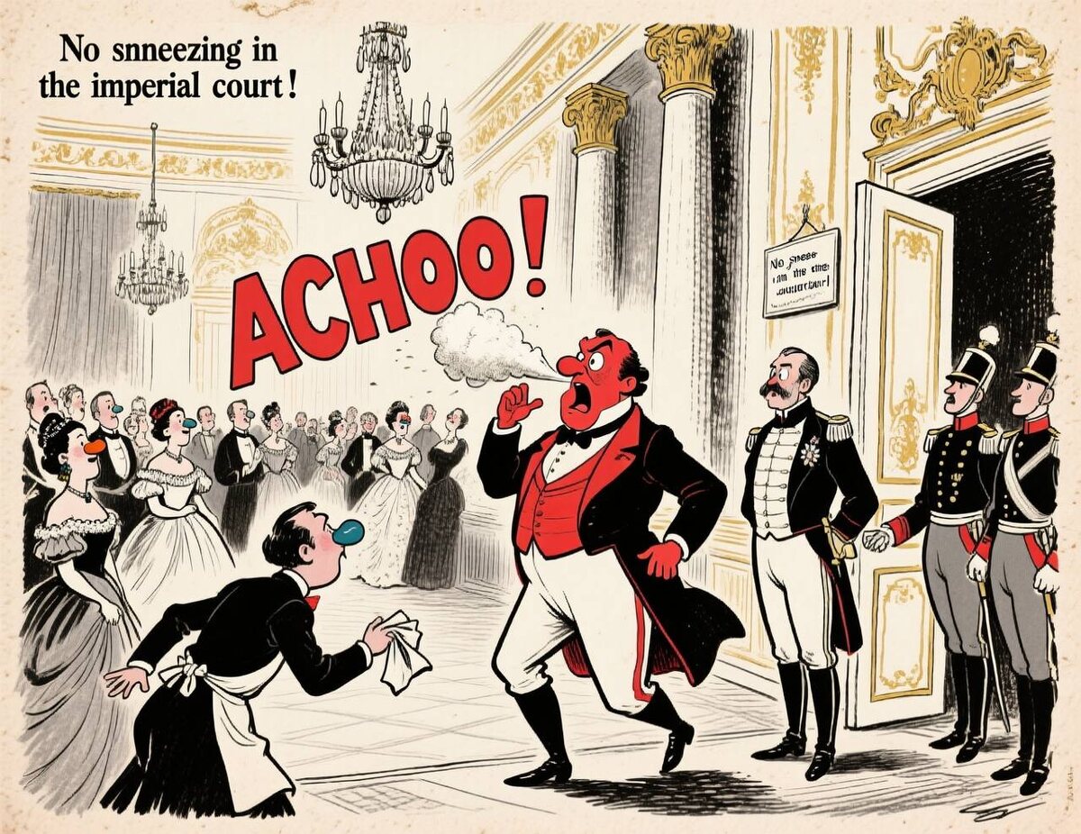 🔹В XIX веке в Вене запрещали чихать на публике во время королевских церемоний. 🔹Чих — считался нарушением этикета и уважения. 🔹Слуги должны были предугадывать чих — и подносить платок. 🔹Если кто-то чихнул — его выгоняли с бала. 🔹Однажды дипломат sneezed во время встречи с императором Францем-Иосифом. 🔹Его депортировали. 🔹Люди носили специальные носовые зажимы — чтобы не sneeze. 📌 Даже нос не был свободен от имперской дисциплины. WorldHistory