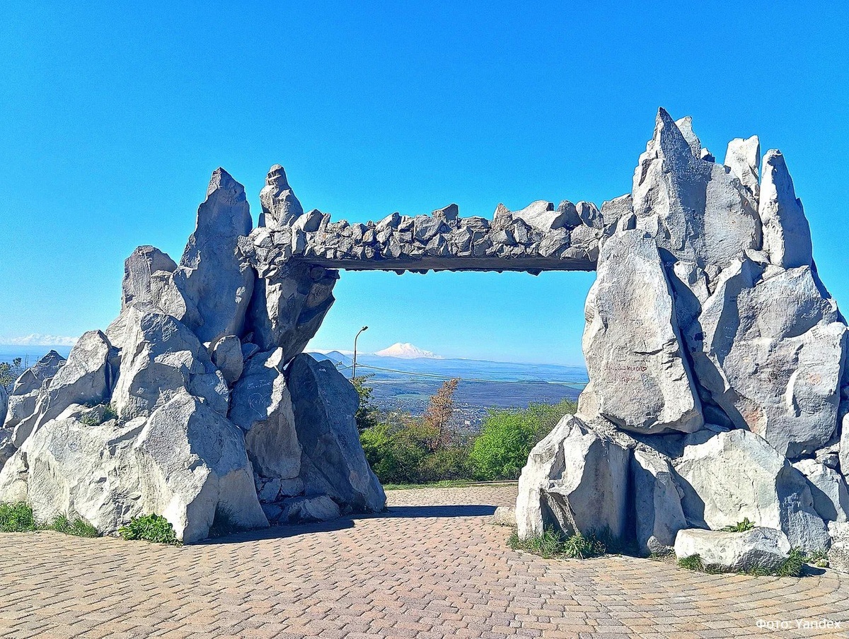 Ворота Солнца История Ворот на горе Машук в Пятигорске крайне неоднозначна, поскольку до конца неизвестно, кто же на самом деле их воздвиг. Также непонятно, когда они были возведены. Другое их название - Арка любви. Ворота Солнца выглядят весьма оригинально – две импровизированные скалы, накрепко соединенные мостом. Отсюда видны окрестные горы, сам Пятигорск, лежащий у подножья Машука, и даже далекий Кавказский хребет. Существует традиция, согласно которой будущий муж должен трижды пронести невесту на руках сквозь Арку. Если девушке удобно, и она не чувствует дискомфорта, такова будет и грядущая семейная жизнь. В противном случае приходится ожидать ссор и противоречий. 📌Ворота Солнца на карте #ставропольскийкрай #воротасолнца