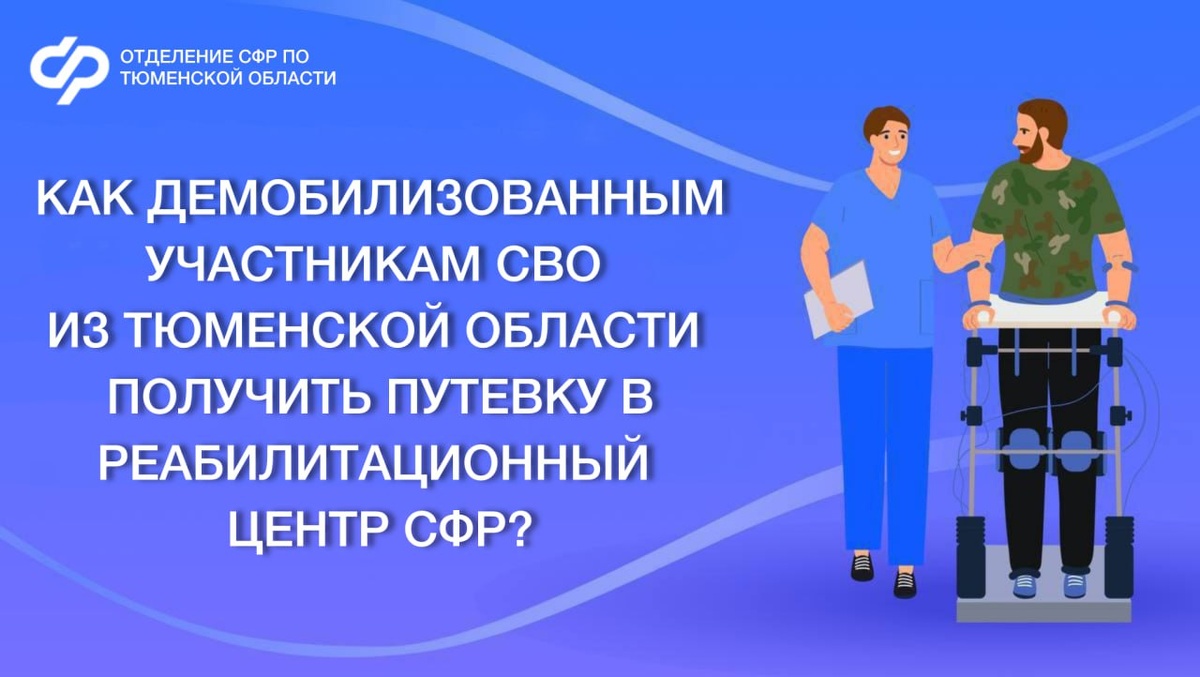 Отделение СФР по Тюменской области направляет ветеранов специальной военной операции на санаторно-курортное лечение и медицинскую реабилитацию в центры Социального фонда России🏡 Основные условия для получения услуги: - быть демобилизованным (уволенным) - иметь удостоверение «Ветерана боевых действий» Для получения направления на лечение необходимо: 📝 Подать заявление: - лично в любой клиентской службе Отделения СФР; - через портал госуслуг; - в МФЦ; - через медицинскую организацию. 📑 Представить документы медучреждения, подтверждающие наличие показаний и отсутствие противопоказаний к медицинской реабилитации и санаторно-курортному лечению. ✍️ Решение о направлении на лечение принимается в течение двух рабочих дней после подачи заявления. Реабилитационный центр и удобное время для поездки участник СВО может выбрать самостоятельно. ✅ Отделение СФР по Тюменской области обеспечит бойцов персональным сопровождением на всех этапах, полностью оплатит лечение и возместит расх