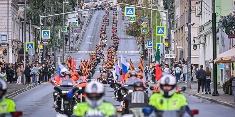 Колонну возглавил Раис Татарстана Рустам Минниханов, проехавший путь на мотоцикле «Урал».