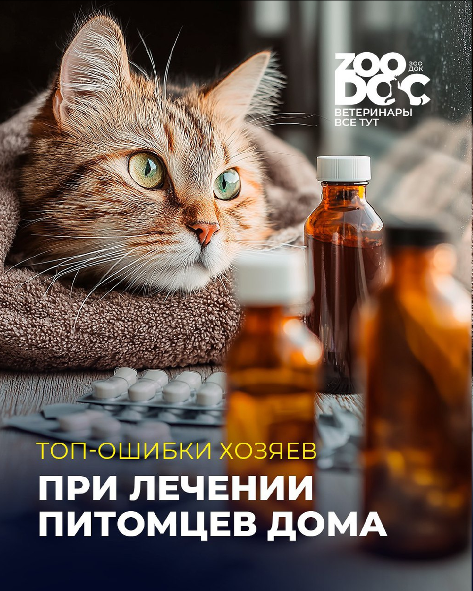 Мы все любим своих хвостиков и хотим помочь им как можно быстрее. Но иногда «лечение дома» может обернуться серьёзными проблемами. 🔹Давать человеческие лекарства То, что помогает нам, может быть смертельно опасно для питомца. Даже обычный парацетамол или аспирин могут вызвать тяжёлое отравление. 🔹Поиск советов «в интернете» Форумы и чаты полны советов «от знакомых», но организм каждого животного уникален. Подобное самолечение может только усугубить болезнь. 🔹Задержка визита к врачу Иногда хозяева надеются, что «само пройдёт». Но время в таких случаях — главный враг: от промедления болезнь становится тяжелее. 🔹Народные методы Травки, компрессы и «бабушкины рецепты» могут быть вредны и вызвать аллергию или ожог. 🔹Неправильная дозировка Даже если лекарство назначено правильно, ошибка в дозировке может привести к отравлению или отсутствию эффекта. 💡 Главное правило: лечение питомцев должен назначать только ветеринар. 👉 А записаться к врачу легко и быстро через ZooDoc!