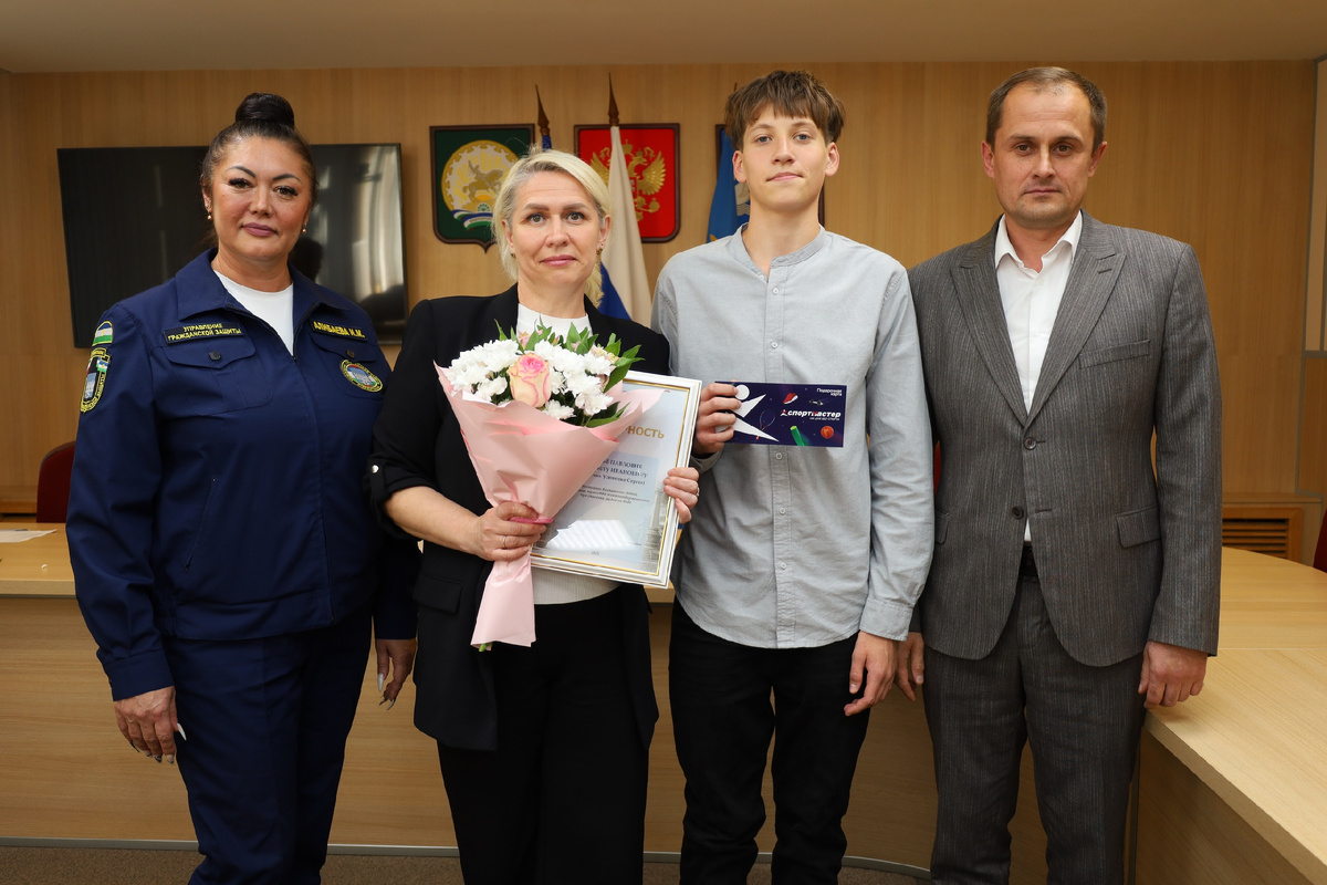 В администрации Стерлитамака вручили награды студенту колледжа физической культуры, управления и сервиса Кириллу Юдаеву и учащемуся школы №20 Сергею Удовенко за спасение тонущего друга. Отважный поступок ребята совершили в мае этого года.