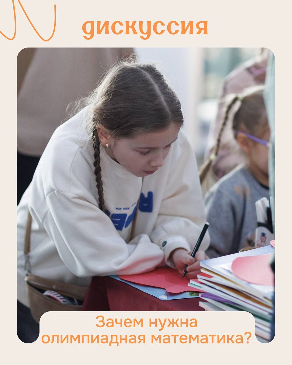 Олимпиада нужна каждому, или это что-то для избранных? Как соревновательность влияет на усвоение знаний? И что делать, если ребёнок гуманитарий? Эти и другие вопросы обсудим на дискуссии с экспертами: • Анастасия Погода, руководитель системы кружков «Фрактал». • Георгий Вольфсон, учитель математики ФМЛ 366, руководитель «Онлайн-школы Георгия Вольфсона», автор книг по школьной математике, популяризатор науки, многократный победитель всероссийских педагогических конкурсов. • Анастасия Головина, методист средней ступени «Образовательного Центра «Самолёт». Модератор дискуссии: • Мария Корнилова Директор «Образовательного Центра «Самолёт», автор книги «Смешарики. История культовой вселенной» Готовьте свои вопросы и до встречи 6-7 сентября, Севкабель Порт, пространство Цех. Фестиваль детского образования «Просто Учиться», вход по регистрации.