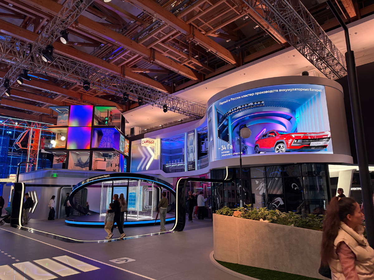 Более 80% транспорта в Москве на электрической тяге, и я удивился. Электробусы с литий-ионными батареями заряжаются за 20 минут на 90 километров. Интерактивная станция дает возможность самому подзарядить автомобиль и подобрать правильную розетку. Поиграй с кабелем — это как зарядка для души.