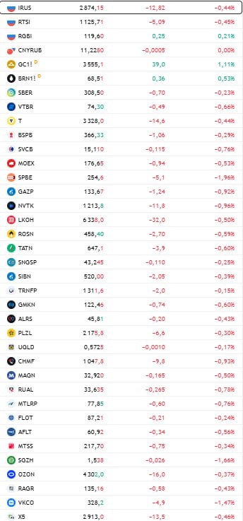 На 10:00 мск индекс Мосбиржи теряет 0,42%, до 2874,86 пункта