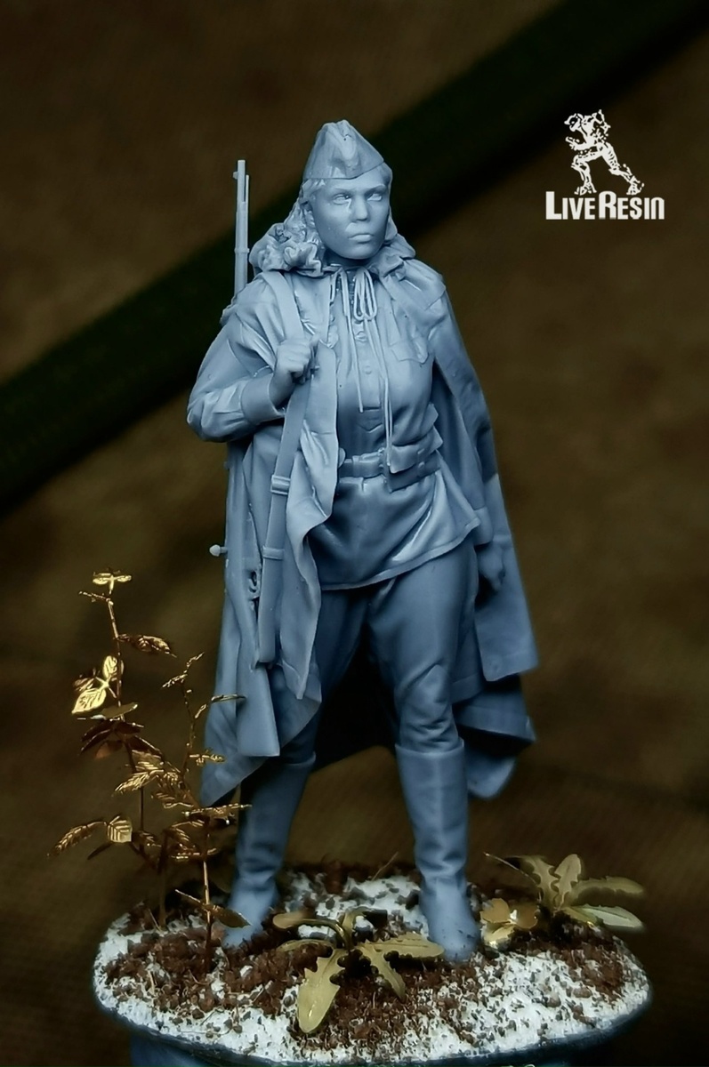 Live Resin из Москвы выпустила на 3D-принтере фигуру девушки-зенитчицы в карауле (каталожный номер LRM-35190) в масштабе 1/35.