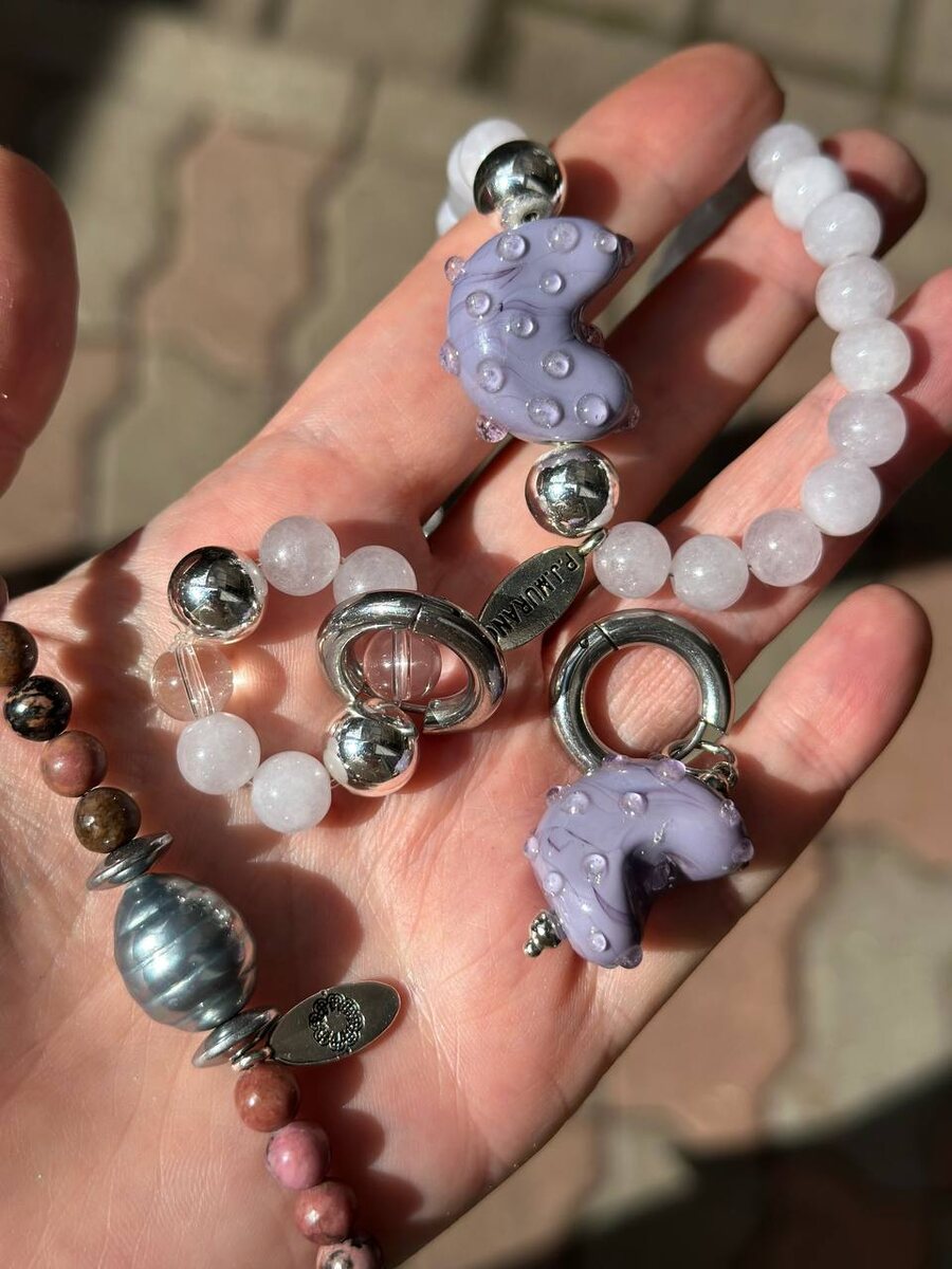 Состав чокеров несёт ощущение силы, которую не надо демонстрировать. А натуральный камень — твой личный якорь. Ты чувствуешь это кожей, ещё до покупки. Пиши “живое” — подберу украшение, которое не просто носится, а ощущается. Сегодня последний день предзаказа на чокеры Полная стоимость Чокер голубой агат, муранское стекло, фианиты, 6600₽ Серьги 6600₽ Чокер родонит, майорский жемчуг, 5100₽ Серьги голубая лилия 6000₽