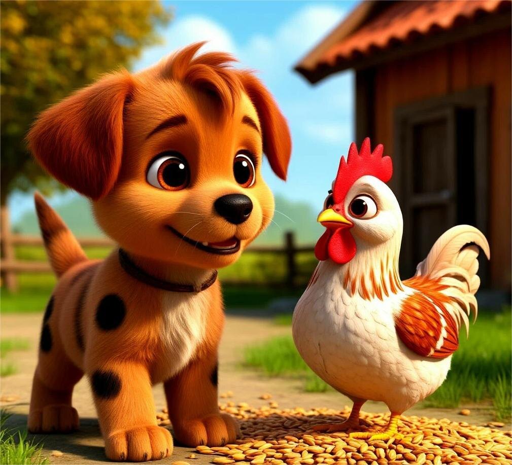 И курица бежит помочь,