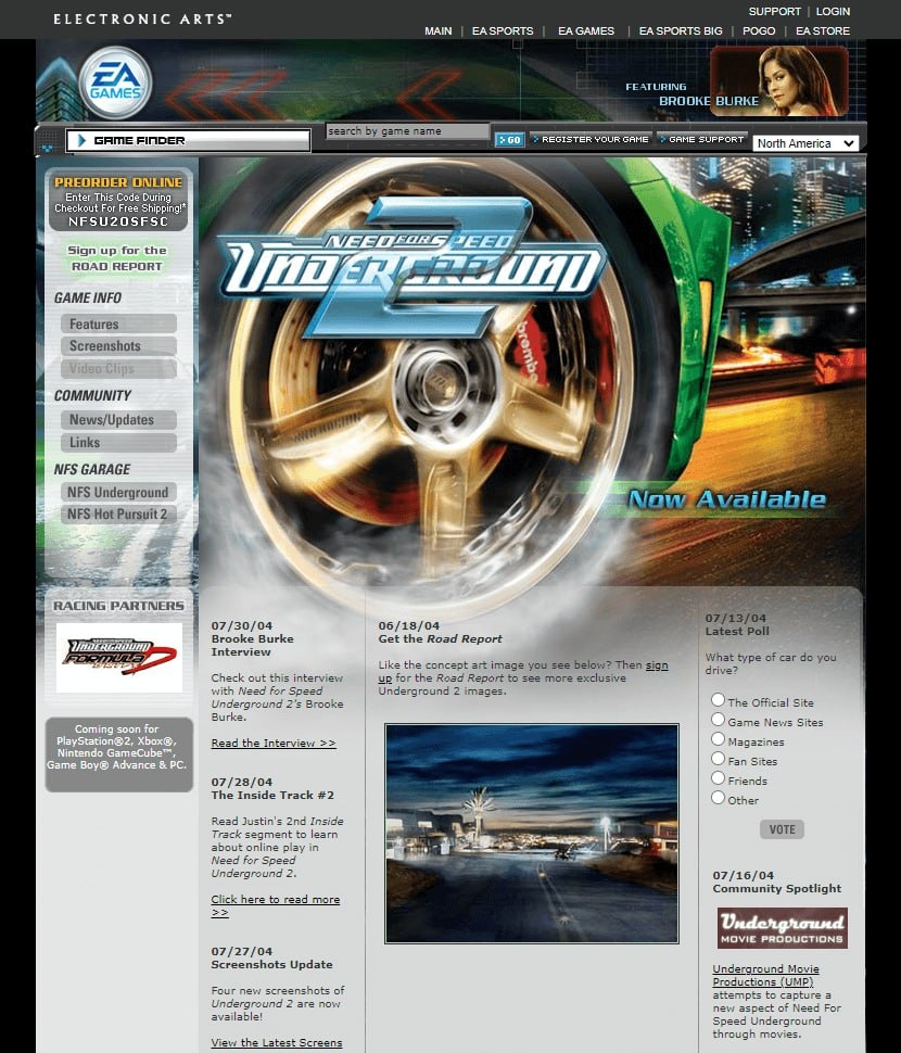 Вот так выглядел сайт Need for Speed Underground 2 в 2004