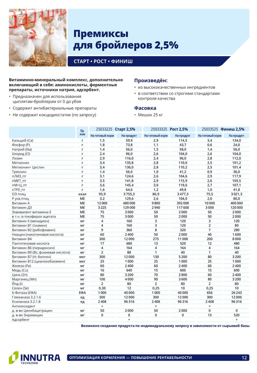 🐔Премиксы для бройлеров с нормой ввода 2,5%. Старт - Рост - Финиш.
