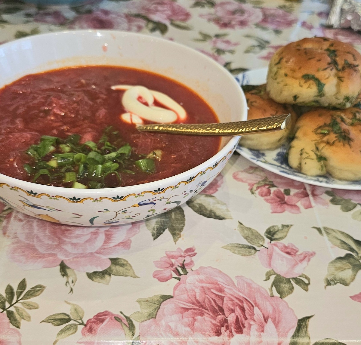 Борщ с чесночными пампушками. Именно пампушки с чесноком и зеленью превращают борщ в блюдо ресторанного уровня ;) У кого нет рецепта, делюсь. Рецепт бомбический, пользуюсь им много лет , пробовала разные, эти лучшие, очень воздушные, пряный аромат зелени и чеснока, готовятся просто, воду на молоко не заменяйте , эффнкт невесомости пропадет ;) Идеально, подходит для обеда в Русском стиле для иностранных гостей Почерк к меня разборчивый. Живите достойно, живите красиво, легко и со вкусом. Ваша Надежда Некрупская, член Партии Единая Россия #рецепты#меню#пампушки#борщ#кухня#кулинария#русскаякухня#Россия#Москва#мужчины#женщины#ресторан#кафе#прием#банкет#международныеотнощения