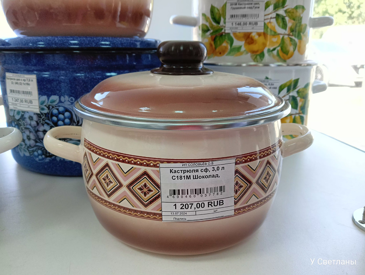 Сегодня после покупок я заглянула в наш Продовольственный магазин, сюда завезли много красивой посуды, решила и вам показать, дорогие подписчики. Начну с кастрюльки. Объёмом в три литра - 1207 р. На ней очень красивый орнамент. Она вместительная и вроде бы не так много места занимает. Я ранее железных сахарниц не видела или просто не замечала. И вот, смотрю и думаю, а можно ли хранить сахар в сахарнице из металла? Я бы побоялась, но может я отстала от жизни, или просто многого не знаю. Ну, а сама по себе эта сахарница мне нравится. И стоит она 260 рублей. Другая железная сахарница, другой формы. Она стоит 182 рубля, потому что объёмом поменьше от той сахарницы. Все сахарницы имеют в себе ложечки. Помню сахарницы в моём детстве , все без ложечек. Сахарница керамическая с деревянной крышкой, чудесно выглядит, красивое сочетание. Её цена - 362 рубля. Красивая сахарница и большая. Она подходит под кухни черно-белого цвета. Я знаю несколько блогеров с такими современными кухнями, им бы она