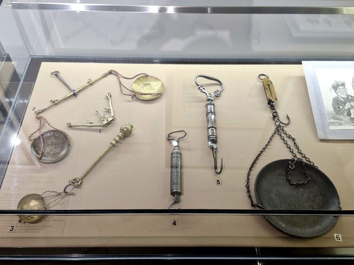 Красивые и редкие весы, безмены, гири сейчас можно найти на нестандартной выстаке из ГИМ. Она работает в РИАМЗ на Соборной. Название у выставки образное — «Знай меру!», но оно хорошо передаёт и другой смысл: а не пора ли разобраться в почти сказочных аршинах и пудах?! Небольшая экспозиция помогает разобраться в том, как в России измеряли вес, длину и объём в конце XVII — начале XX вв. На выставке можно просто любоваться экспонатами, ведь раньше утилитарные весы, гири и «линейки» старались сделать красивыми. А можно читать и вникать, чтобы устроить себе метрологический ликбез. До появления метрической системы расстояние, вес и объёмы в России не просто измеряли, а даже делали поверки приборов. Но сложностей всё же была масса. Вот пример. Ведро = 1/40 бочки = 2,5 штофа = 4 винные бутылки = 5 водочных бутылок. И всё бы хорошо, только ведро вмещало то 10 литров, то 12, а то и вовсе 8. И это только «трудности перевода» винных мер. Объём — самое сложное. С длиной тоже не всё гладко. В раз