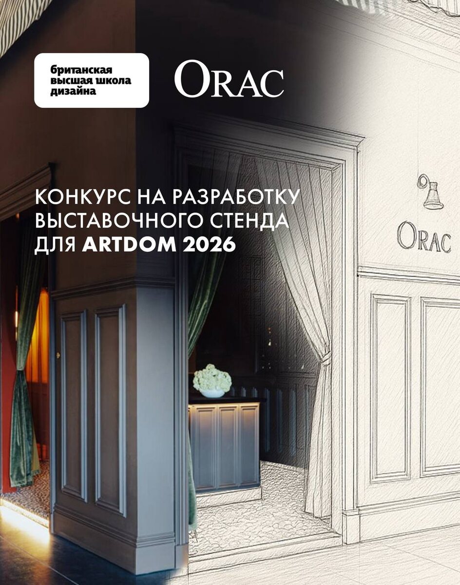 Уже сегодня в 19:00 по московскому времени приглашаем вас на онлайн-брифинг, посвящённый нашему совместному конкурсу с Британской высшей школой дизайна! Задача: разработать проект выставочного стенда Orac Россия для выставки Artdom 2026. Приз победителя: 100 000 ₽ + контракт на реализацию проекта стоимостью 100 000 ₽. Приём работ открыт до 30 сентября 2025 года. Подробные условия опубликованы на странице конкурса